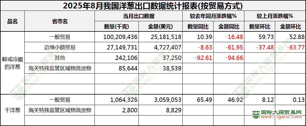 2025年9月洋蔥出口數(shù)據(jù)(按貿(mào)易方式)