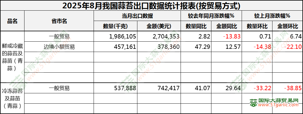 2025年8月蒜苔出口數(shù)據(jù)(按貿(mào)易方式)